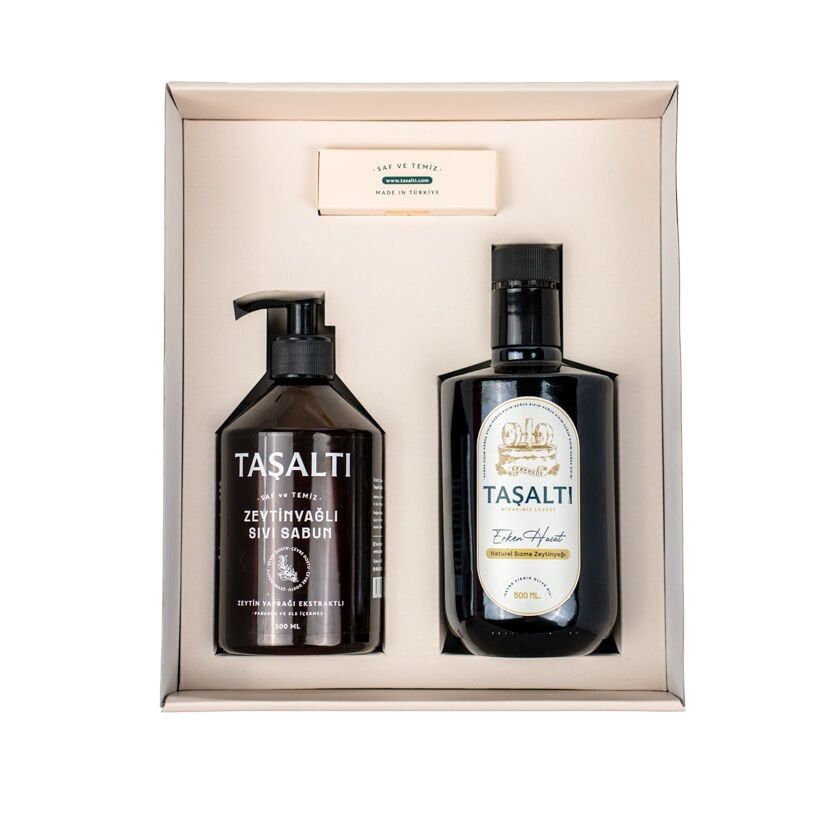 TAŞALTI HEDİYE PAKETİ 2 OZON YAĞLI SABUN 100 GR - SIVI SABUN - ERKEN HASAT 500 ML